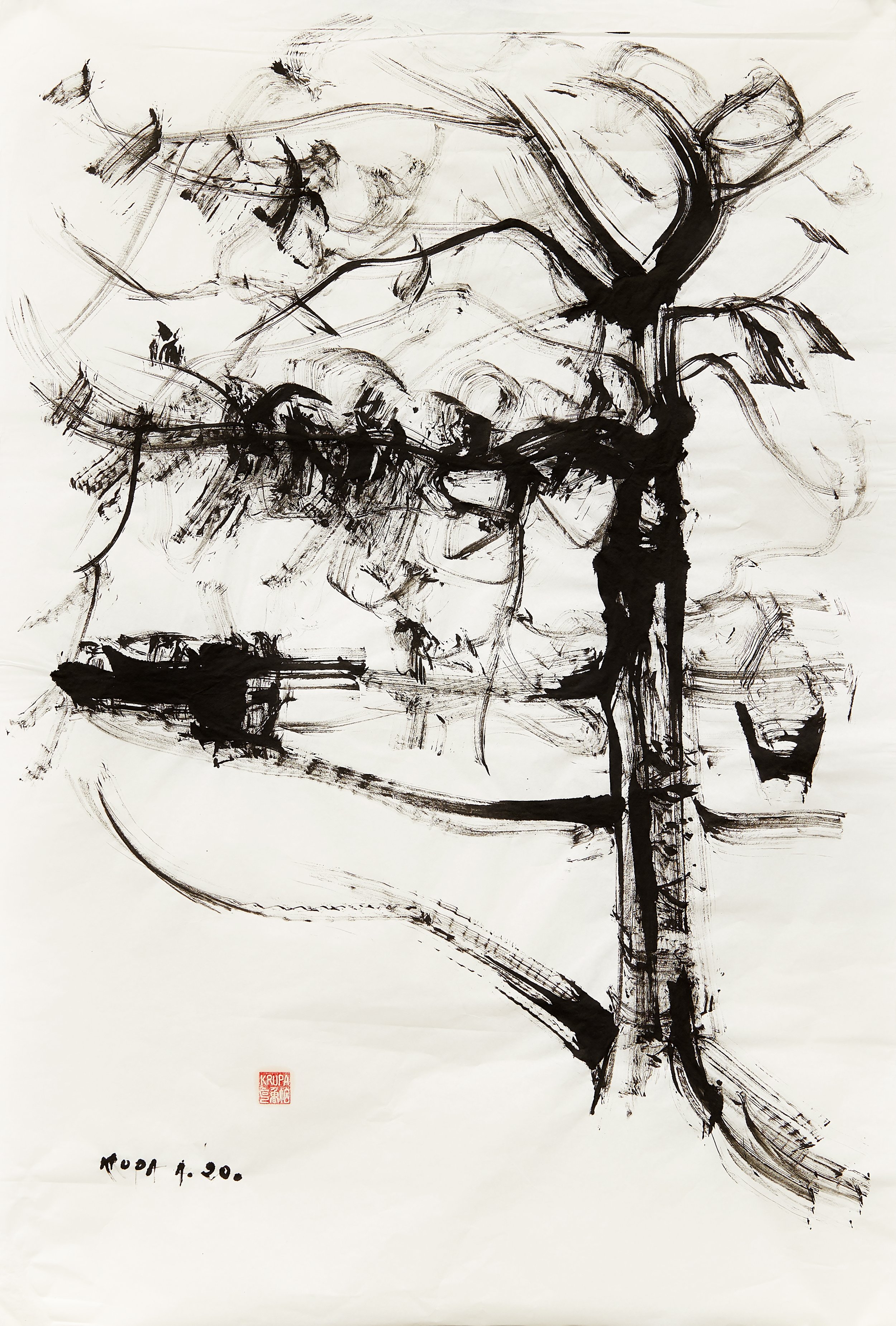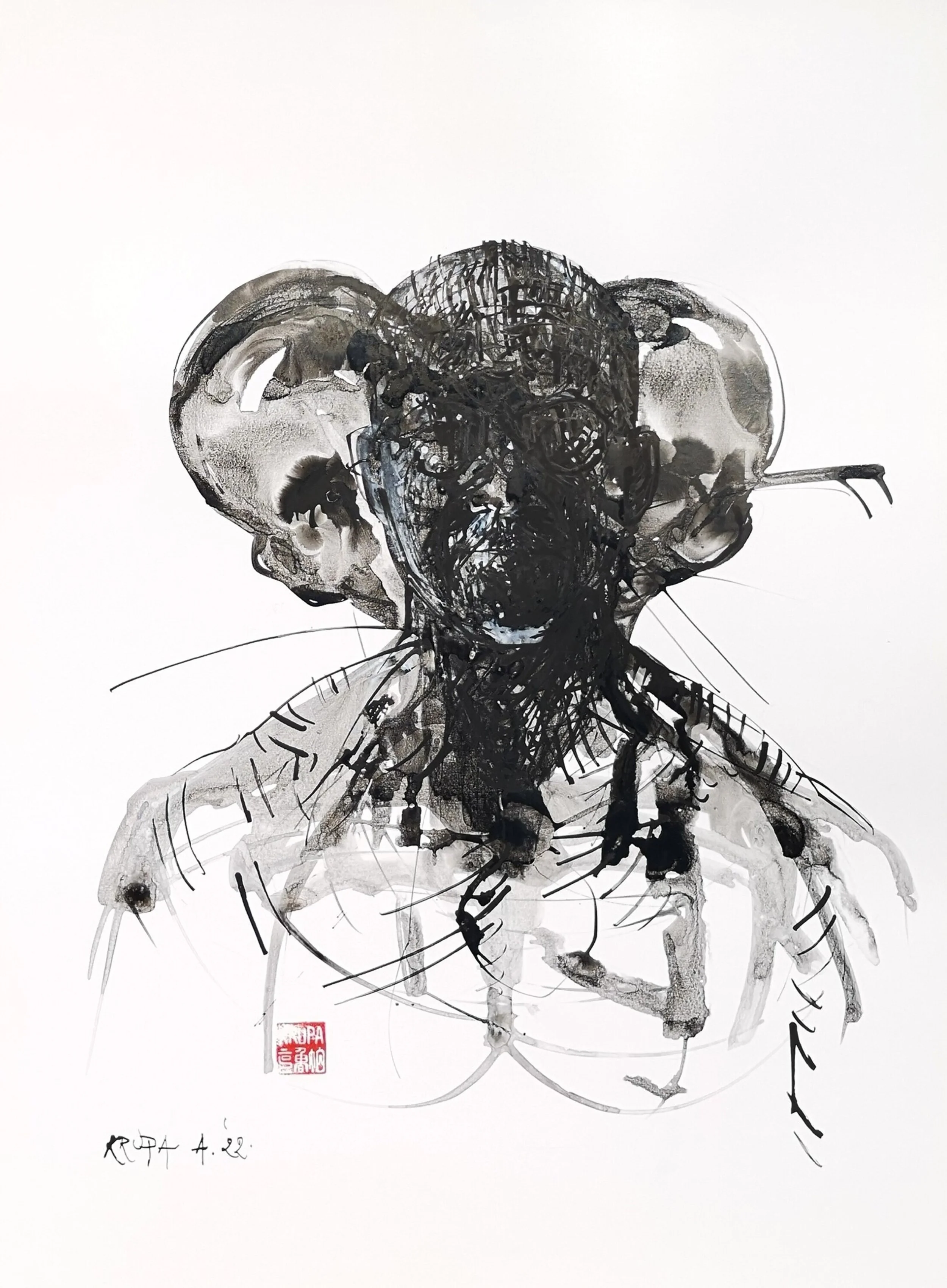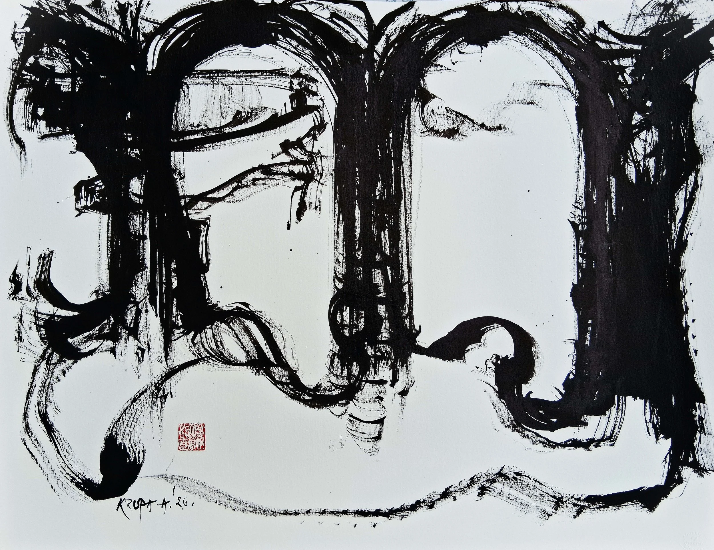 Alfred Freddy Krupa (Croatian contemporary artist born 1971) occupies a distinct position within the evolving landscape of contemporary drawing, where the resurgence of ink as a critical medium has gained increasing institutional and market attention. Trained at the Academy of Fine Arts, University of Zagreb (Croatia) and further shaped by postgraduate study at Tokyo Gakugei University (Japan) under a Japanese Government scholarship, Krupa bridges European academic traditions and East Asian ink methodologies with notable conceptual clarity.