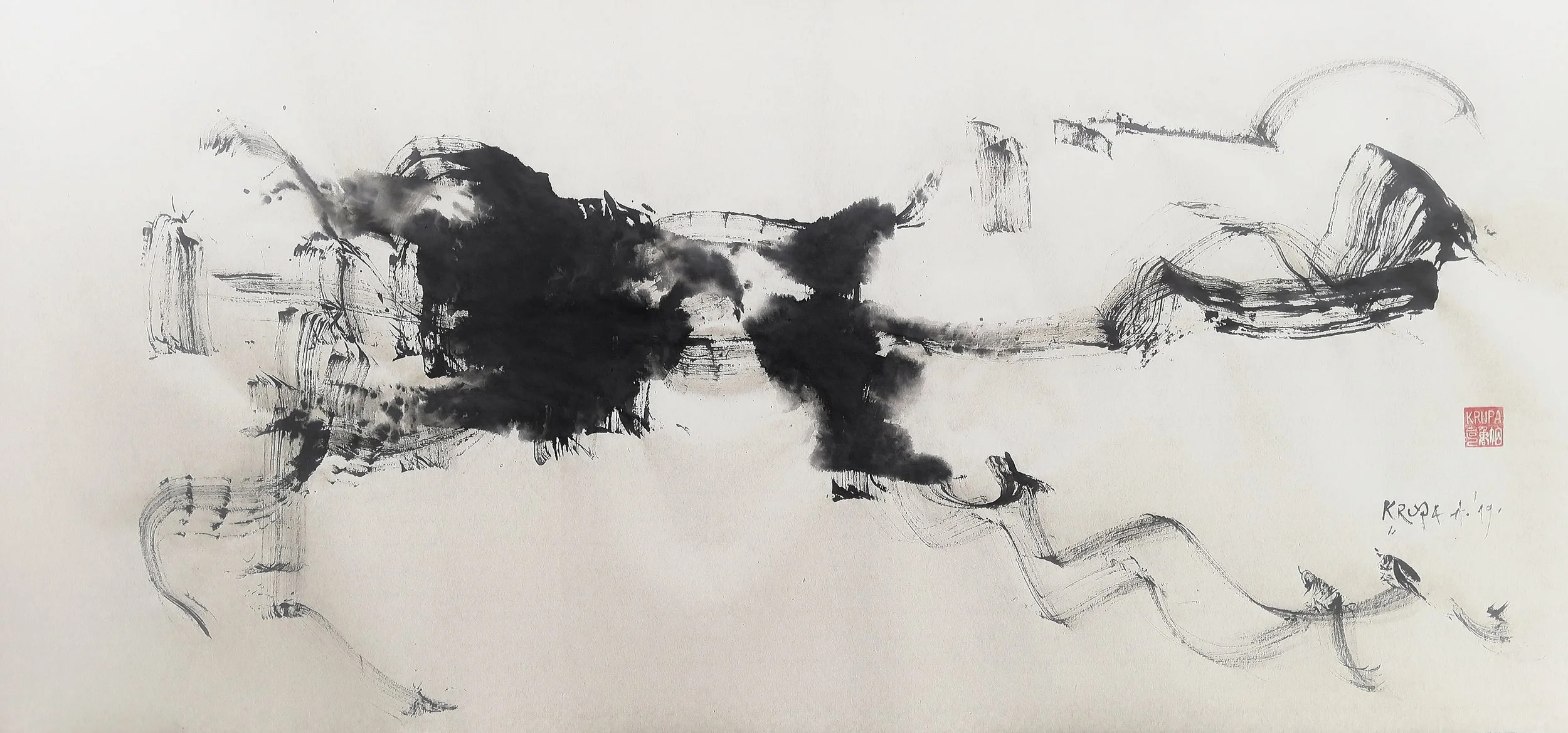 Central to his contribution is the articulation of Global New Ink Art, a field that has expanded beyond its East Asian origins into a transnational framework. As author of the New Ink Art Manifesto, Krupa advances a European perspective within this movement, emphasizing restraint, spatial tension, and the epistemological potential of drawing. His works foreground the interplay between conscious control and unconscious impulse, producing compositions where absence and silence function as active structural elements.