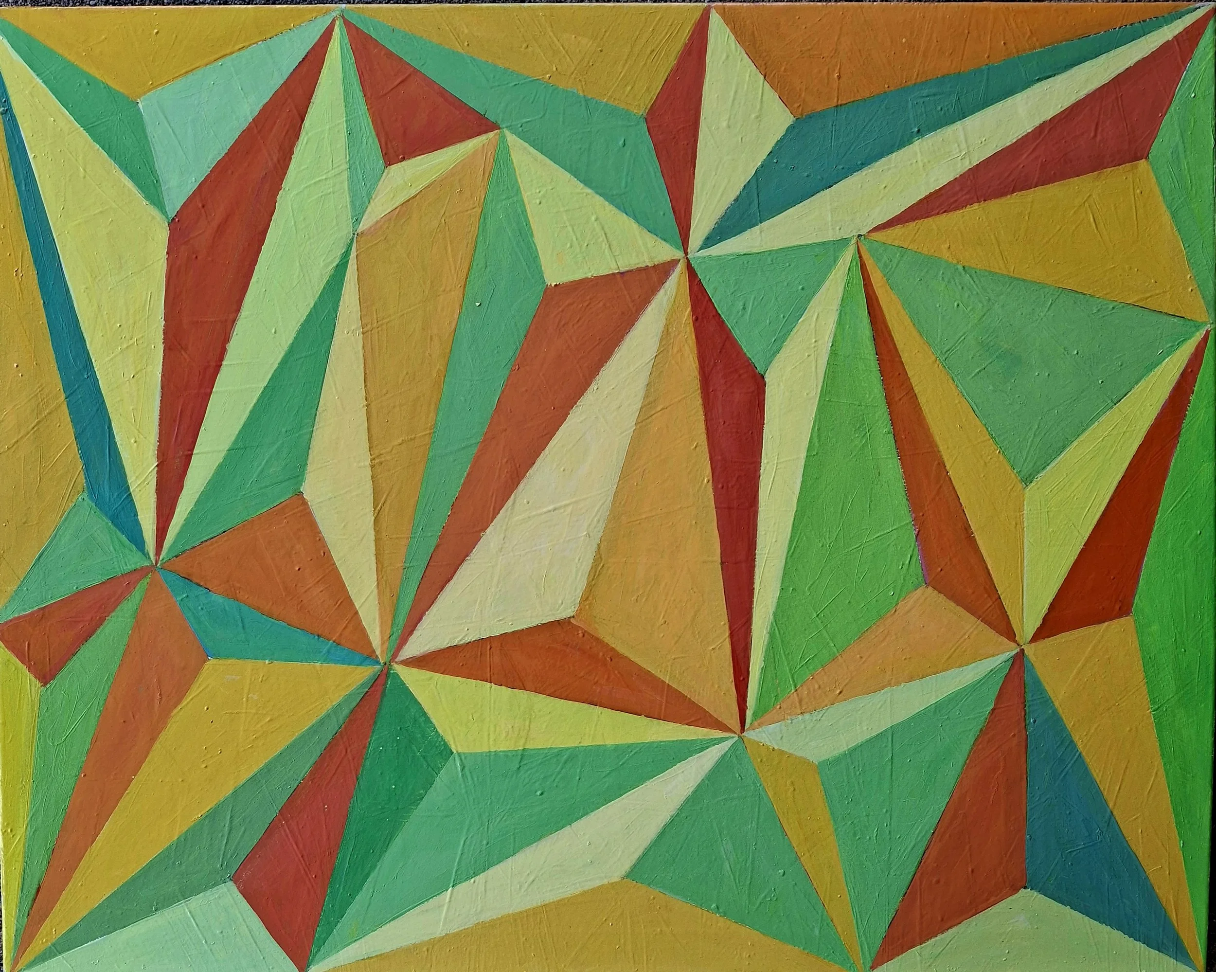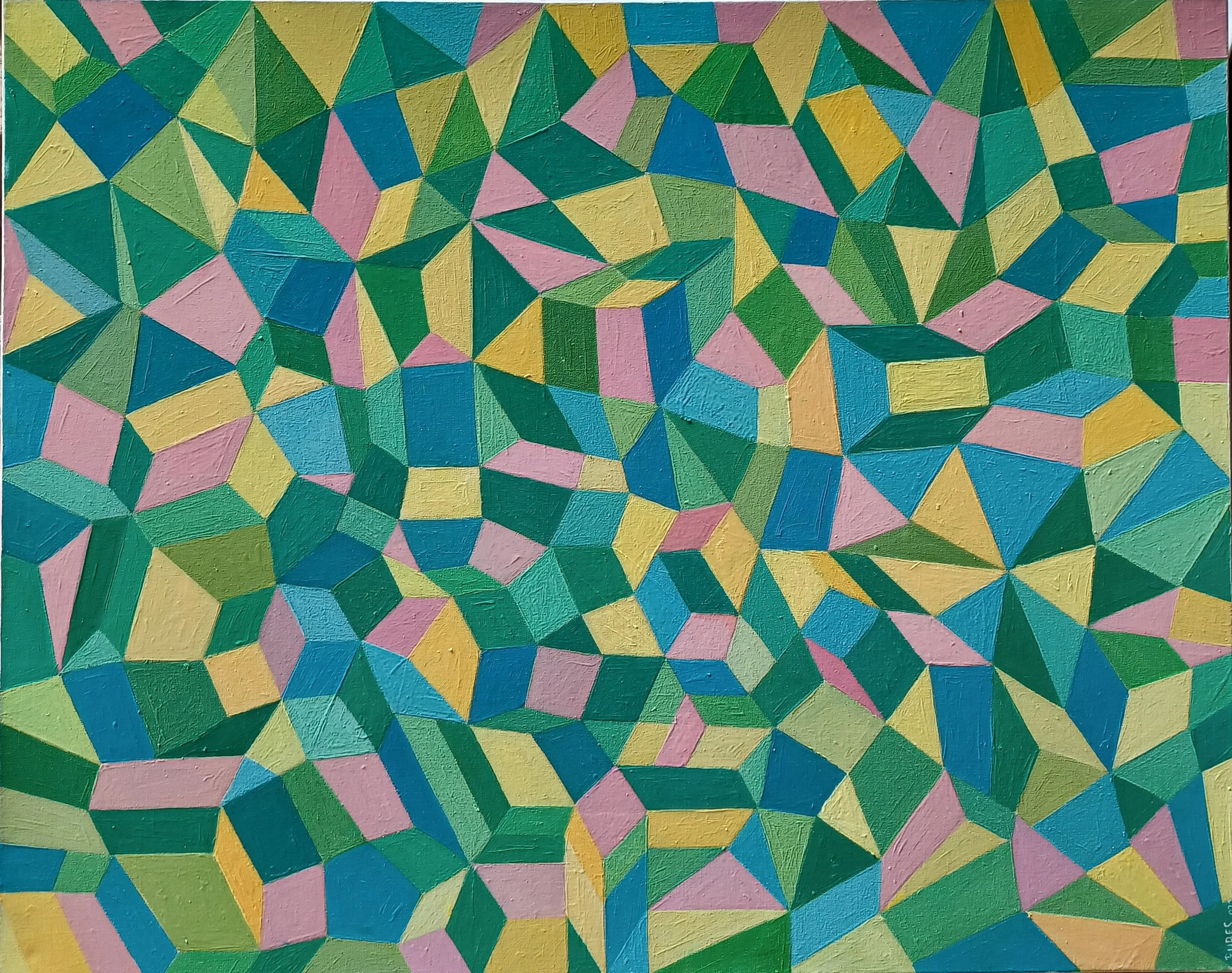 Geometric composition with with pyramidal shapes, 2025., oil on canvas, 80x100 cmmidal shapes,