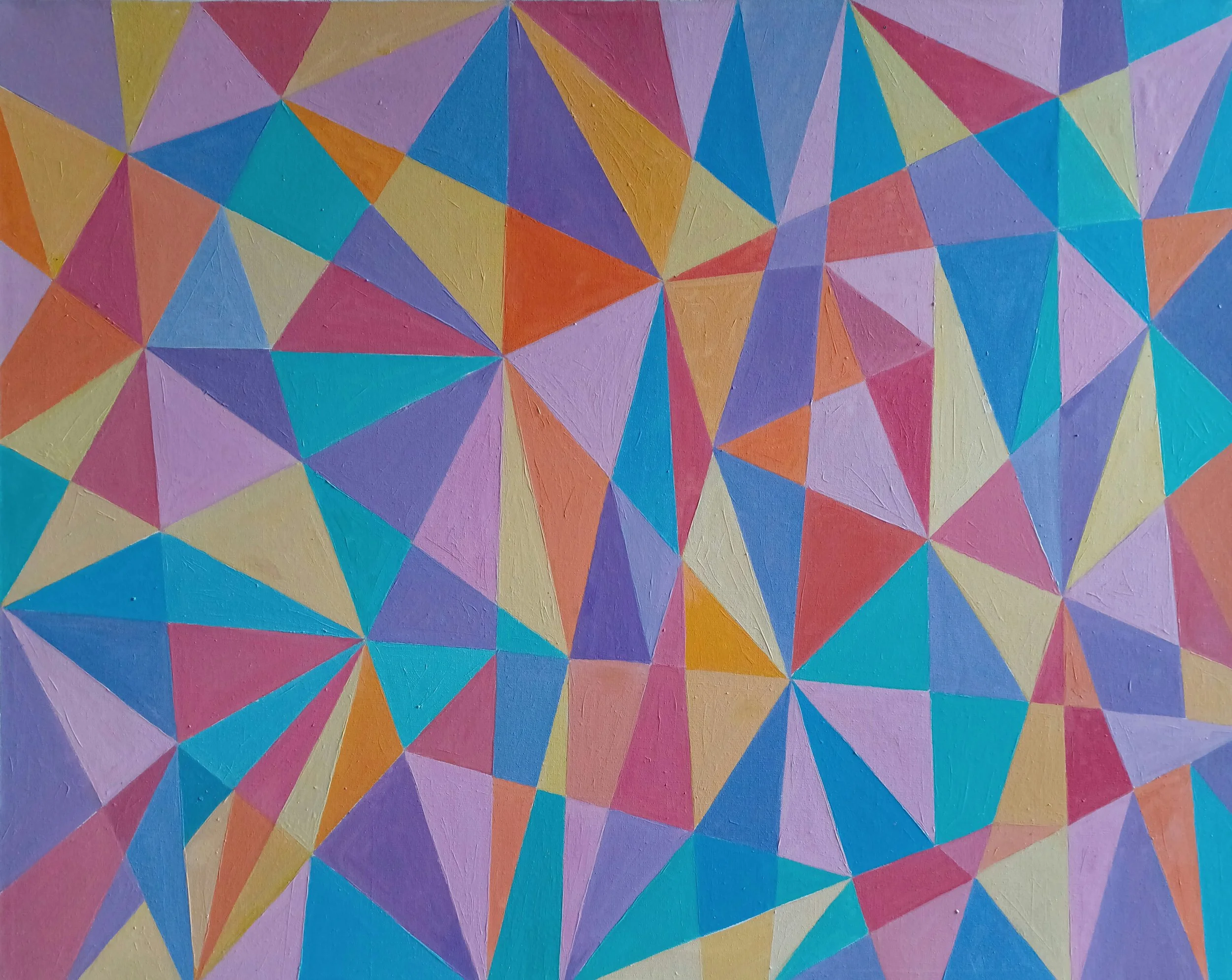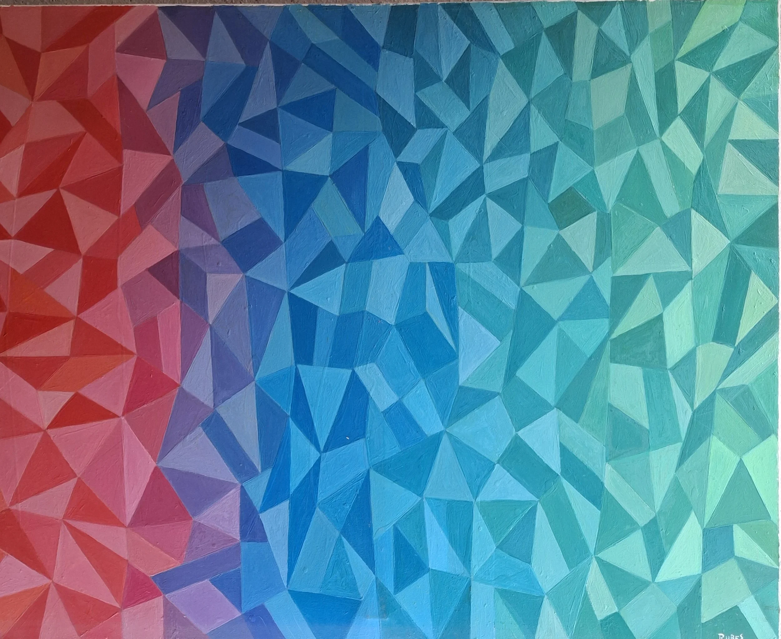In recent years, his focus has evolved further toward geometric abstraction. This phase introduces a heightened sense of structure and precision, balancing intuitive composition with calculated spatial organization. As the artist notes, “My style of painting, especially geometric abstraction, requires precision in the execution of geometric forms and lines, imagination in composing the overall structure, and exceptional concentration in the interaction of colors.” The complexity of each work is closely tied to its scale and the density of its geometric elements, with time investment varying accordingly.