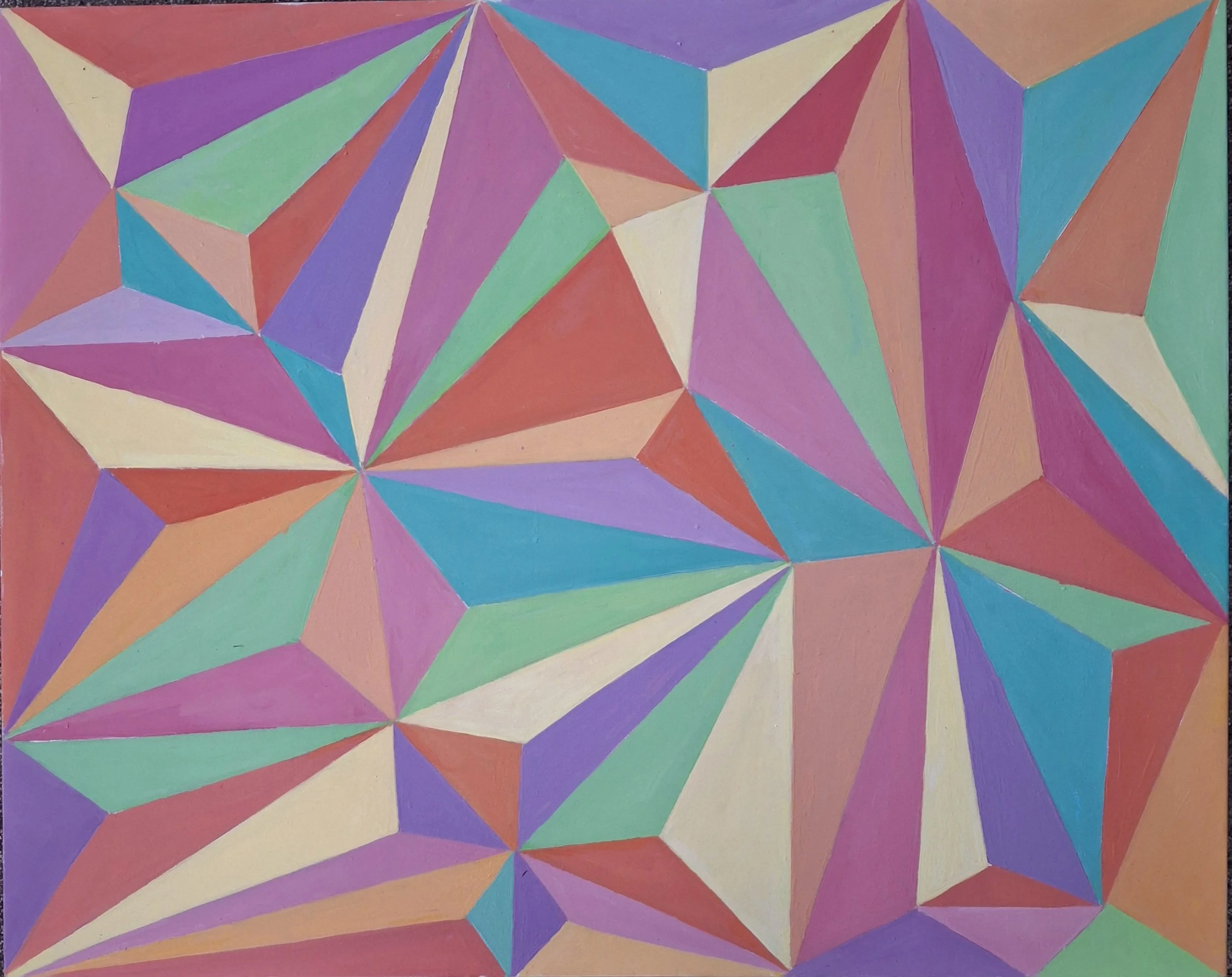 Geometric composition with pyramidal shapes No II, 2025. 80x100 cm. oil on canvas