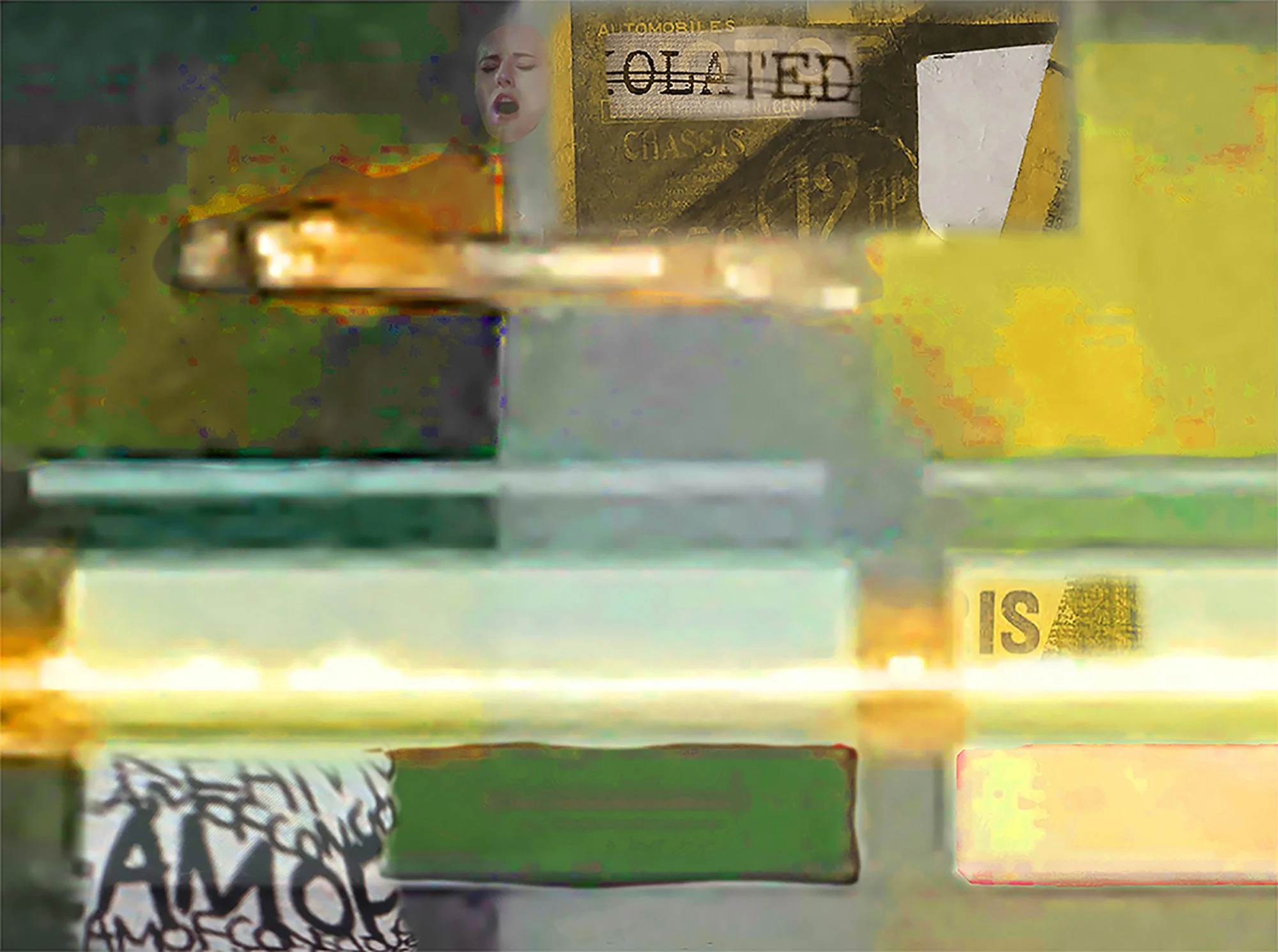 In parallel with his editorial success, Vega has cultivated a fine art practice that marks a significant conceptual departure. His recent abstract works build upon a foundation of photographic realism but deliberately disrupt it through layered references to architecture, cultural iconography, and material experimentation. The resulting compositions occupy a liminal space between representation and abstraction, reflecting what the artist describes as an engagement with “randomness and chaos” inherent in daily life.