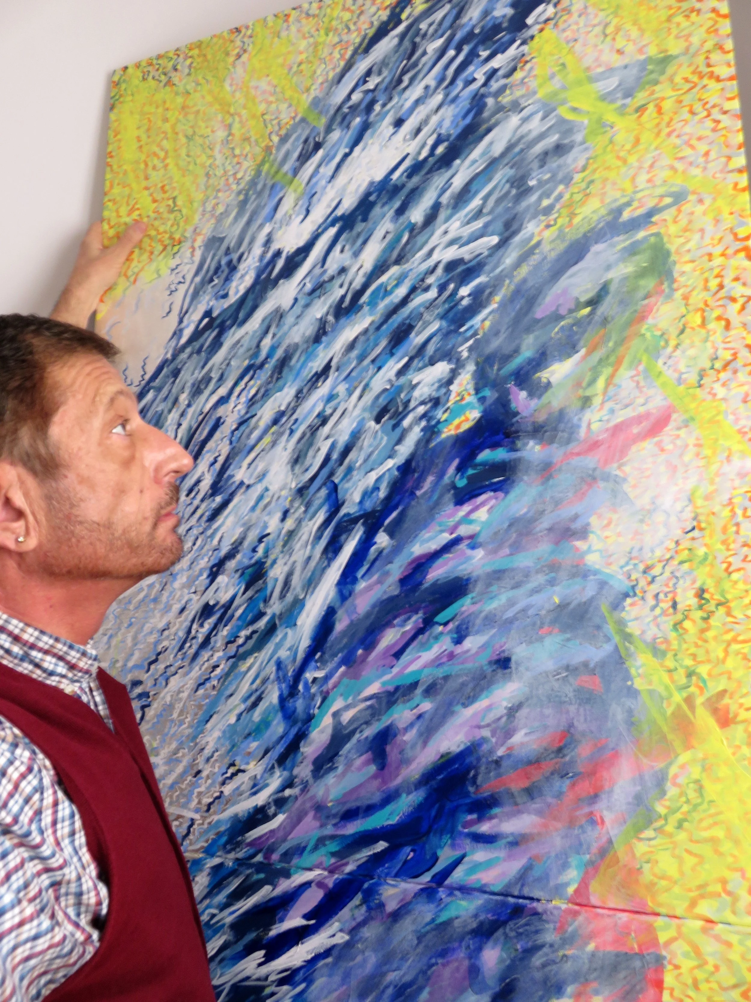 At 25, he suffered a car accident, severely damaging his face. He recovered his facial features after multiple cosmetic surgeries. He then discovers that he was HIV positive and decides to live a life as normal as possible. He marries and divorces twice. After a lifetime of research in photography and painting, he finally focuses on painting at the age of 60, launching his works into the complicated art market.