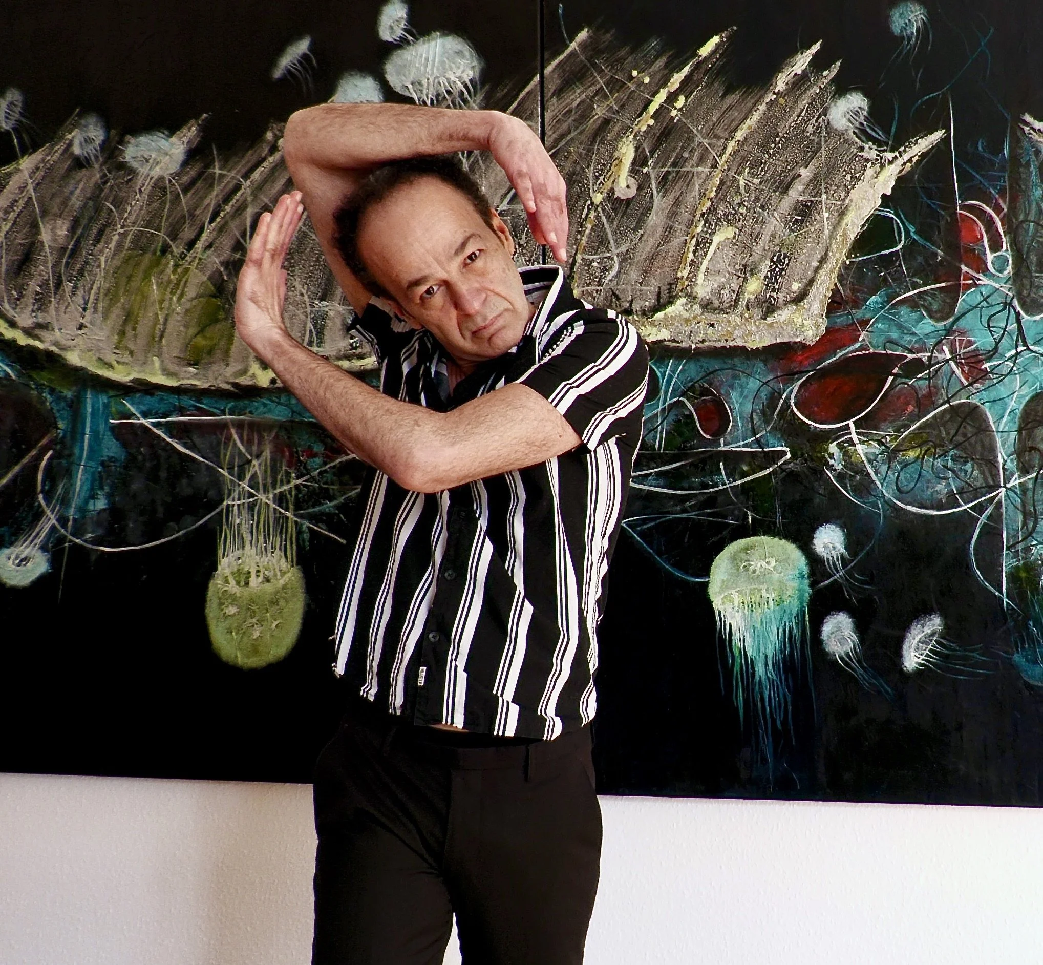 In my art I first establish the impossible. With the interference of frequencies (with a special instrument I created just for that purpose) on oil and a mixed substance based on water. First I design an abstract foreground of the composition. This abstraction conducts me to let life manifest itself.